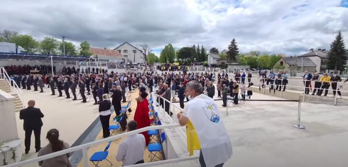 Gospićko-senjsko biskup Zdenko Križić ispred Crkve hrvatskih mučenika u Udbini predvodio je misu za poginule na Blajburgu i rekao da se te žrtve ne smeju zaboraviti, ali ni osvećivati jer "tu smo da molimo i praštamo".