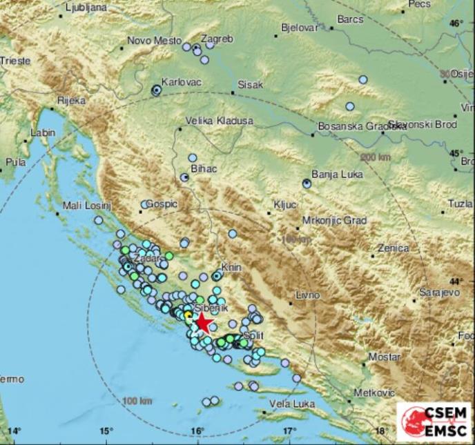 Epicentar je bio oko 13 kilometara jugoistočno od Šibenika.