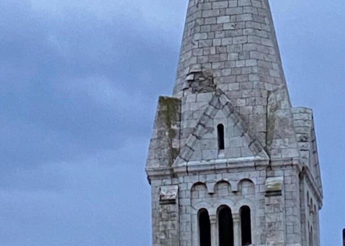 Grom je oštetio crkvu, a kamenje obližnje krovove kuća i automobile parkirane u podnožju crkve.