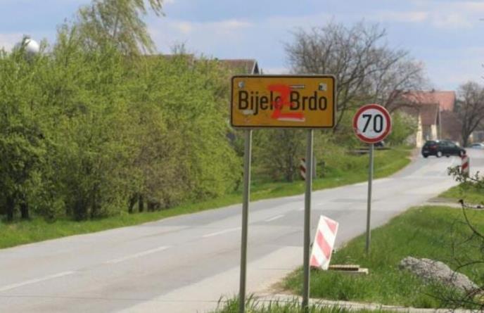 Na tablama koje označavaju ulazak u Bijelo Brdo i opšinu Erdut iz smera Osijeka, kao i na obližnjoj trafostanici u samom mestu, nepoznata osoba je ispisala slovo Z, simbol simpatizera ruske invazije na Ukrajinu.