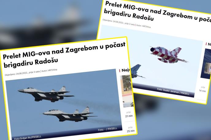 Naime, na sajtu Hrvatske radio televizije osvanula je vest na kojoj je prateća fotografija bila ni manje ni više nego lovac RV i PVO Vojske Srbije Mig-29 sa sve zastavom Republike Srbije.