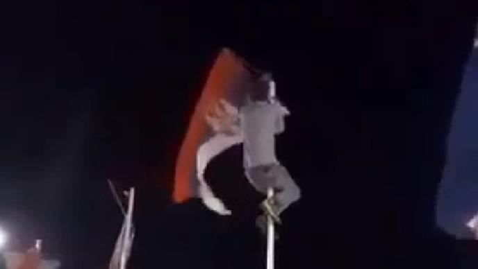 Zastava je skinuta sa jarbola 25. juna oko 1 sat ujutru na Trgu Svetog Trojstva u Požegi, gde su se nalazile i druge zastave zemalja učesnica Hrvatskog festivala jednominutnog filma, koji traje od 22. juna do. Održano 26. juna u Požegi.