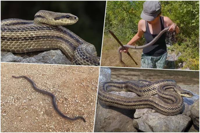 Zmija na koju su naišli je četvoroprugasti smuk, a na snimku se može čuti da je duga oko metar i po. Deluje da su tačno znali o kojoj se vrsti radi jer su je mirno izvukli iz dalmatinskog krša.
