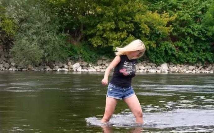 Obuli smo gumene čizme na noge i sišli u korito kod Jadranskog mosta. I pored niskog vodostaja, struje reke su jake, pa su momci iz Kajakaškog i kanu kluba Zagreb pomno pratili naš poduhvat. Prvo smo pokušali da pređemo Savu sa njene leve strane, ali smo zbog jake struje na mostu i otežanog pristupa obali odlučili da pređemo na drugu stranu. Tu, na desnoj obali, pristup reci je lakši. Nedaleko od mosta, voda koja se povlačila ostavila je za sobom dugačku šljunkovitu obalu koja je starim Zagrepčanima nekada služila kao plaža i mesto za tajne ljubavne sastanke. Sunčali smo se i na šljunkovitoj plaži, misleći na dane kada je Sava bila nezagađena, pa su se stari purgeri rado kupali u njoj, a rečna voda je opisivana kao čista i 'srebrnasto penasta'.