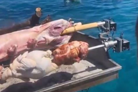 Naime, u objavi na ovoj društvenoj mreži vidi se kako peku jagnje i pretpostavlja se pile na ražnju dok uživaju u kupanju.