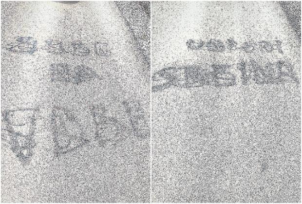 Takođe, na grafitima je latinicom ispisano i ustaško slovo "u".
