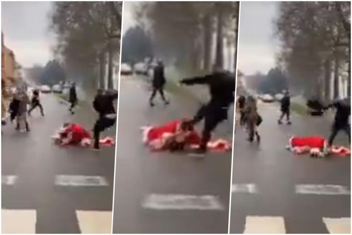 U jednom trenutku muškarac obučen u Deda Mraza završio je na podu, a s druge strane se drugi mladić zaleteo pa ga udario nogom u glavu. U tom trenutku je nastao haos te su se mnogi dali u bijeg, a "Deda Mraz" je ostao da leži.
