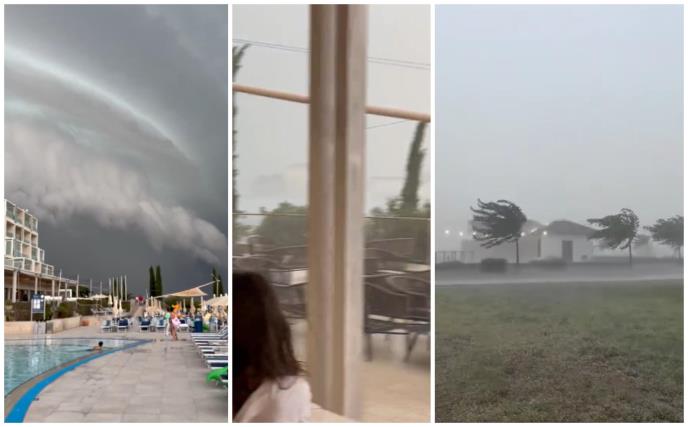 CRVENI ALARM U HRVATSKOJ! Snimak superćelijske oluje koja JE STIGLA U ISTRU: Nebo u Poreču kao apokalipsa, VETAR ČUPA STABLA