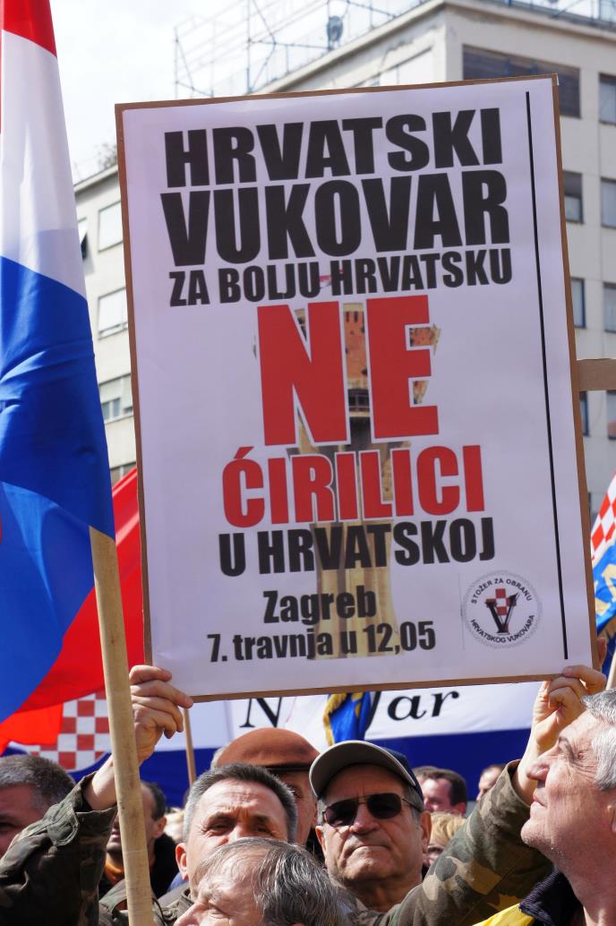Podsetio je da su Srbi po popisu činili grad Vukovar 34 odsto, gde je trebalo da bude ravnopravna upotreba ćiriličnog i latiničnog pisma, i ta odluka je spala na njega da odluči "da li je vreme da se prihvati srpski jezik i pismo".