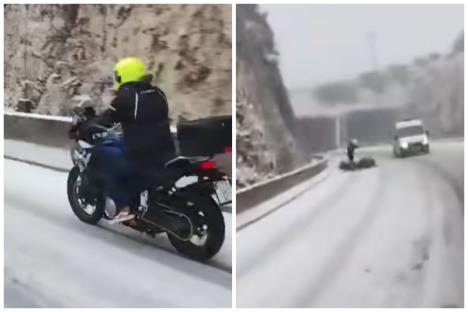 OVAKO SE GUBI GLAVA! Usred zimskog haosa juri na motoru, zamalo da IZGUBI GLAVU - "Godišnji skup ljubitelja LETNJIH GUMA?" (VIDEO)