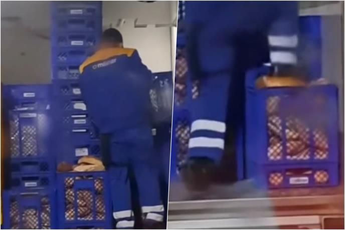 Radnik jedne hrvatske pekarske kompanije snimljen je kako gazi hleb koji se nalazi u korpama!
