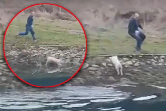Muškarac je nakon finte ostao na obali da prati prase pogledom.
