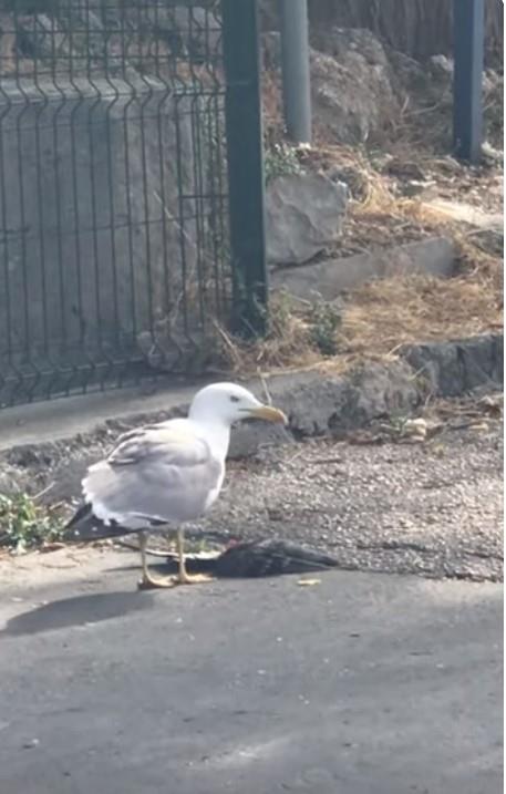 Internetom kruži neobičan snimak na kom se može videti kako na sred ulice galeb jede goluba.