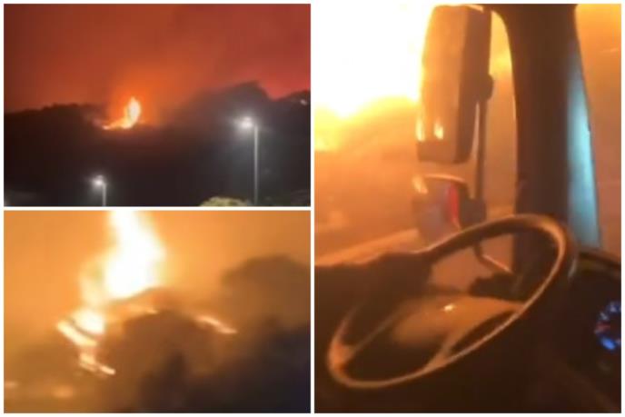 Na jednom snimku se vidi da su čak i vatrogasci uleteli kamionom u požar.