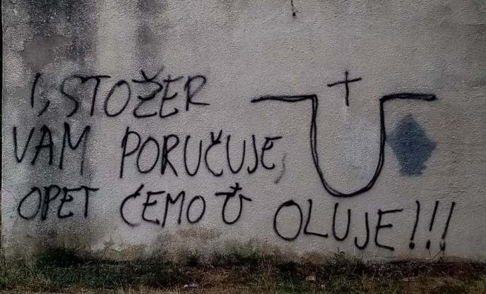 Jedan čitalac hrvatskog portala Slobodna Dalmacija fotografisao je sramotne grafite iz grada Sinja koji "krase" zidove nedaleko igrališta u sklopu Veteranskog centra.
