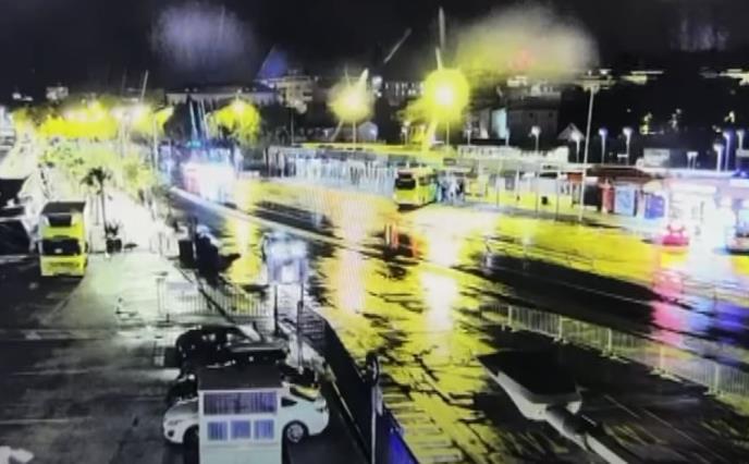 Sam trenutak pada u more je snimljen. Vidi se kako taksi vozi malom brzinom i neposredno pre pada skreće. Čini se da vozač uopšte nije video da pred sobom više nema čvrsto tlo.
