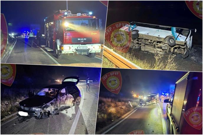 Umaški vatrogasci objavili su fotografije teške saobraćajne nesreće nedaleko Poreča, na području Tara, u kojoj je automobil udario u autobus.