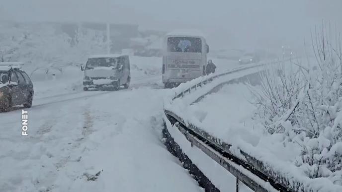 Zbog zimskih uslova na putevima u Lici i Gorskom kotaru zabranjen je saobraćaj za kamione sa prikolicama i tegljače sa poluprikolicama, kao i za vozila koja nemaju propisanu zimsku opremu.