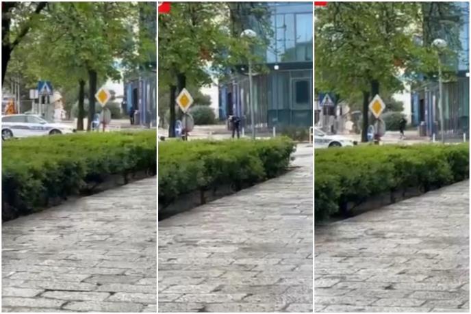 Na jednoj od snimaka koje kruže društvenim mrežama vidi se policajka kako stoji ispred banke dok se u pozadini čuju prolaznici kako komentarišu da je u toku pljačka.
