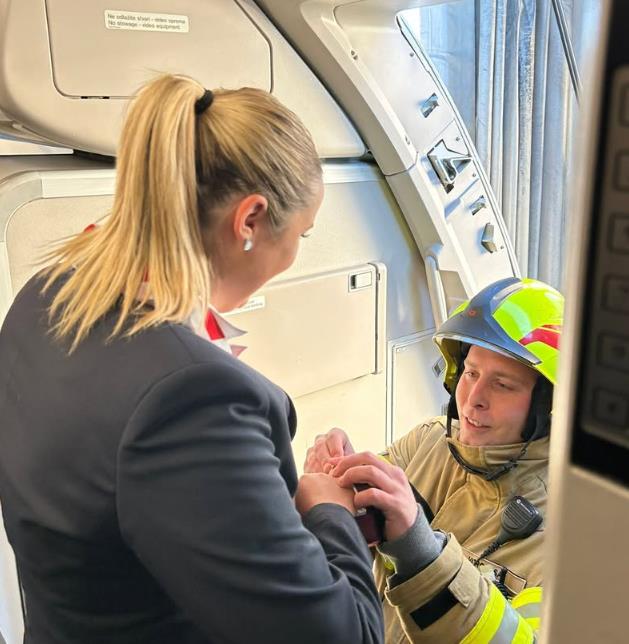"Vatrogasac Roko Brkljačić zaprosio je svoju devojku, inače stjuardesu "Hrvatska erlajnsa" Lorenu Češković — koja je rekla DA!", stoji u saopštenju sa aerodroma Franjo Tuđman u Zagrebu, gde su u sredu ujutru, neposredno nakon sletanja leta "Hrvatska erlajnsa" iz Splita, u avionu svedočili posebnoj i neočekivanoj prosidbi.