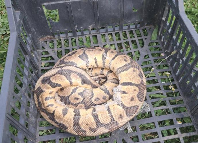 Nakon sat vremena piton je već bio u prenosnom kontejneru hvatača. Godio joj je boravak na suncu te je "živnula".