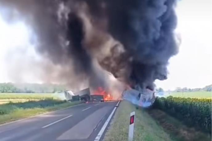 Kamioni su se nakon sudara i zapalili.