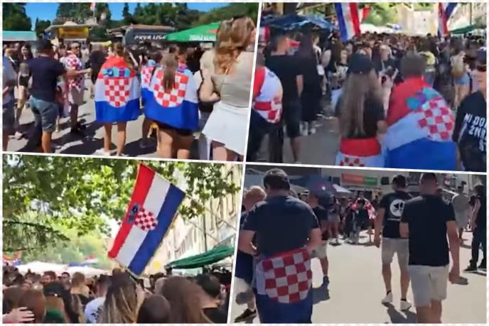 SKANDALOZNI PRIZORI PRED TOMPSONOV KONCERT U SINJU Ljudi u crnom skandiraju "Za dom spremni", gradonačelnik peva da će "zapaliti Krajinu do Knina" (VIDEO)