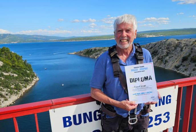 Ričard Dinar, vitalni 82-godišnji Amerikanac, postao je najstariji skakač koji je ikada skočio bandži sa Masleničkog mosta.