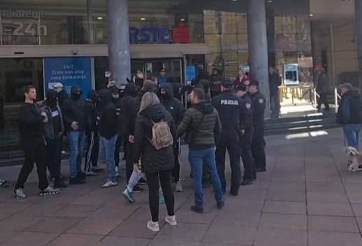 Sa sobom su doneli transparent, a dočekala ih je interventna policija. Nakratko je došlo do naguravanja, ali je brzo prestalo i nije preraslo u veći sukob. Mladići su potom skandirali "Zovi, samo zovi".