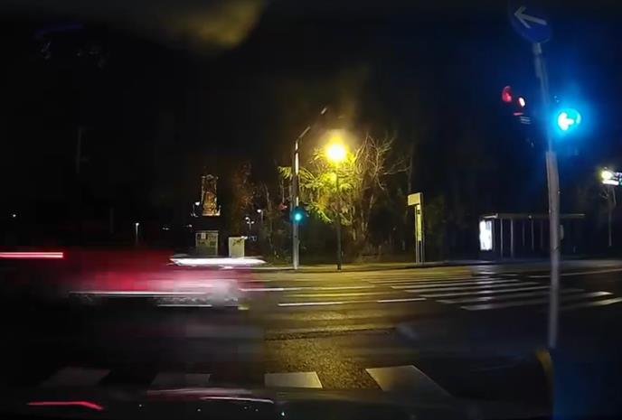 „Snimatelj je čuo zvuk u daljini i odlučio da sačeka da se upali zeleno svetlo. Samo da to nije uradio...“, objavila je stranica „Saobraćajne nezgode i incidenti“, uz napomenu da je vozač automobila, koji je vozio pravo niz Aleju Bolonje, prošao kroz crveno svetlo.
