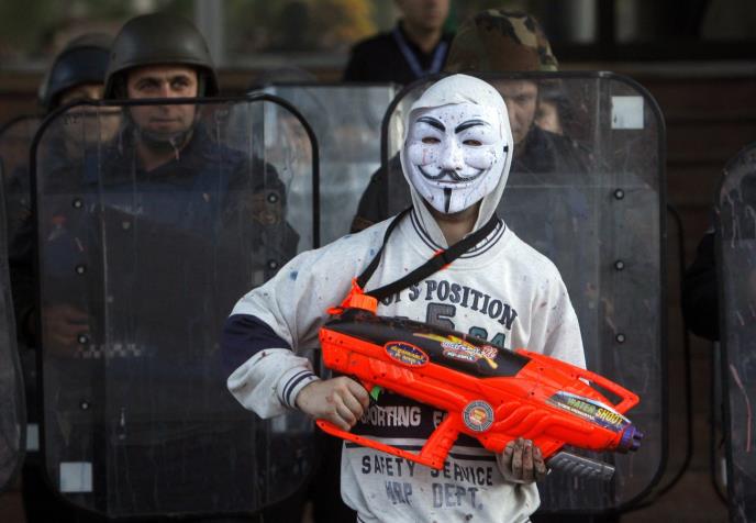 Makedonski mediji navode da su demonstranti bojama zasuli zgradu parlamenta, a potom i zgradu Ministarstva spoljnih poslova. Protest je kao i obično počeo ispred zgrade Specijalnog javnog tužilaštva.