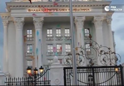 (VIDEO) MAKEDONSKA ŠARENA REVOLUCIJA: Demonstranti bojama gađali zgradu Vlade
