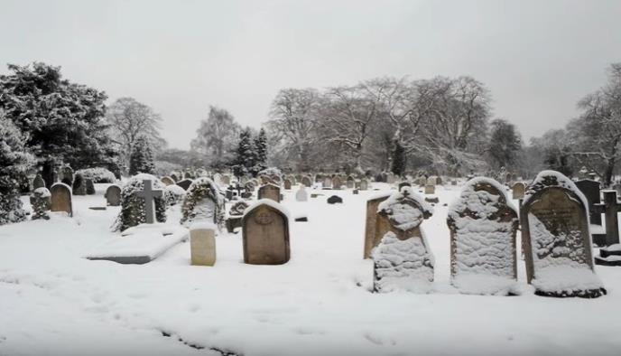 Zbog velikih smetova snega, ljudi, čiji su najmiliji preminuli, prinuđeni su da kovčege sa pokojnicima na rukama nose zavejanim i tesnim uličicama i stazama između grobova do grobnih mesta.
