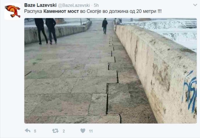 Dvadeset metara duga pukotina pojavila se na Kamenom mostu, jednom od simbola Skoplja.