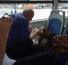 Jedan skopski penzioner je snimljen kako u autobusu na liniji 57 sa uživanjem jede sarmu ili neko drugo jelo.