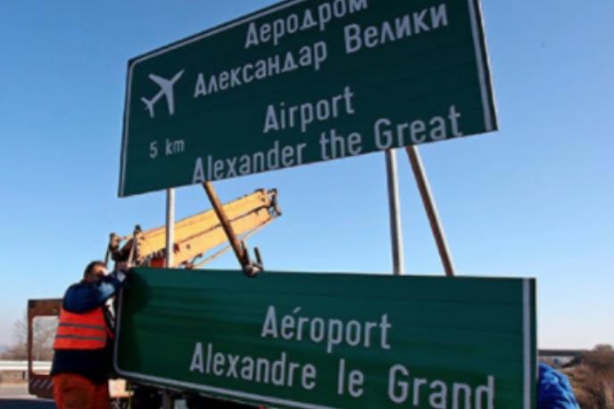 Vlasti Makedonije počele su da sa auto-puta skidaju table sa oznakom za skopski aerodrom "Aleksandar Veliki".