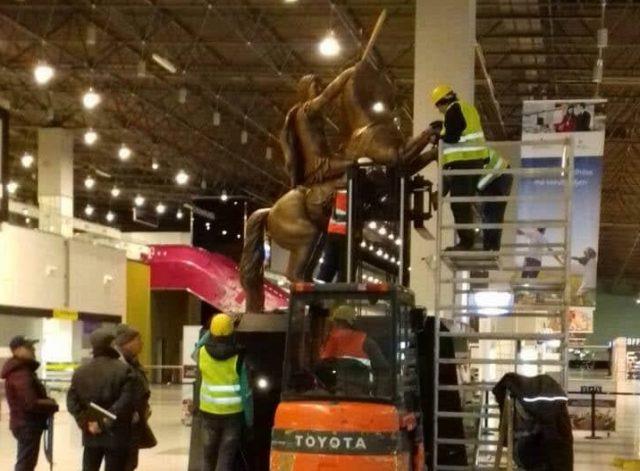 Posle preimenovanja Skopskog aerodroma iz "Aleksandar Veliki" u Međunarodni aerodrom Skoplje, noćas je iz aerodromske zgrade iznet i spomenik Aleksandra Velikog.
