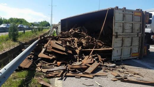 Na auto-putu Skoplje-Đevđelija, kod arheološkog nalazišta Stobi, zbog pucanja gume prevrnuo se kamion i zaprečio po dve trake u oba pravca, a vozač je samo lakše povređen.