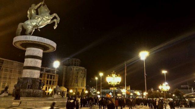 Sinoć se grupa građana okupila na trgu "Makedonija" u centru Skoplja sa namerom da fizički brani spomenik Aleksandra Velikog, odnosno "Ratnik na konju".