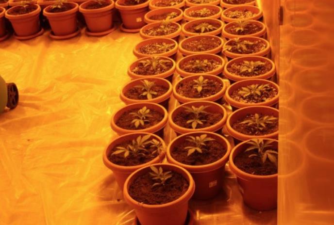 Policija je pronašla i 6,4 kilograma marihuane i 203 saksije sa stabljikama biljke kanabis.