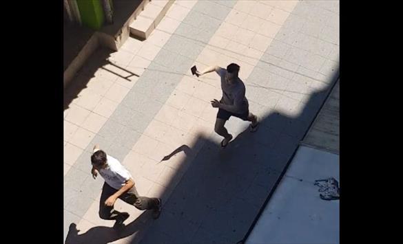 Dve osobe snimljene kako sa satarom u ruci jure muškarca u skopskom tržnom centru Leptokarija, javljaju makedonski mediji.