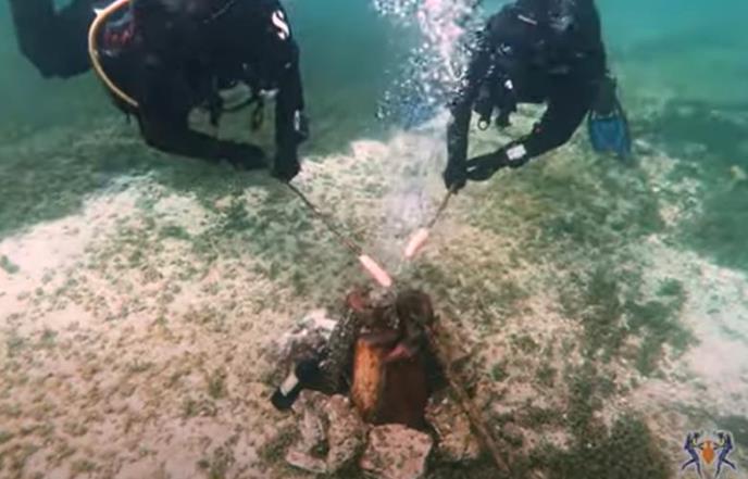 Snimak podvodne praznične vatre, na kojoj dva ronioca "prže" kobasice uz flašu vina, objavljen je na Fejsbuk stranici Ronilačkog centra "Amfora".