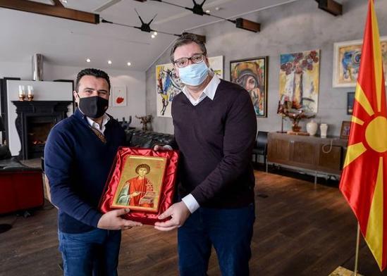 Premijer Severne Makedonije Zoran Zaev poklonio je danas predsedniku Srbije Alksandru Vučiću ikonu svetog Pantelejmona, koji je život posvetio lečenju bolesnih.
