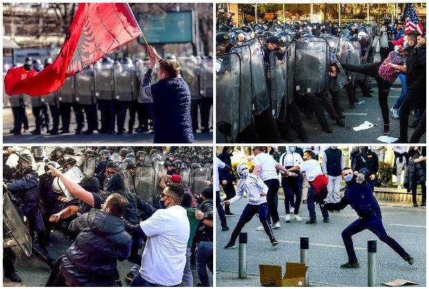 Deo demostranata je nosio albanske zastave i uzvikivao "Velika Albanija!", a grupa sa fantomkama na glavama je bacala kamenje na policajce, koji su u suzbijanju protesta koristili i "šok-bombe".