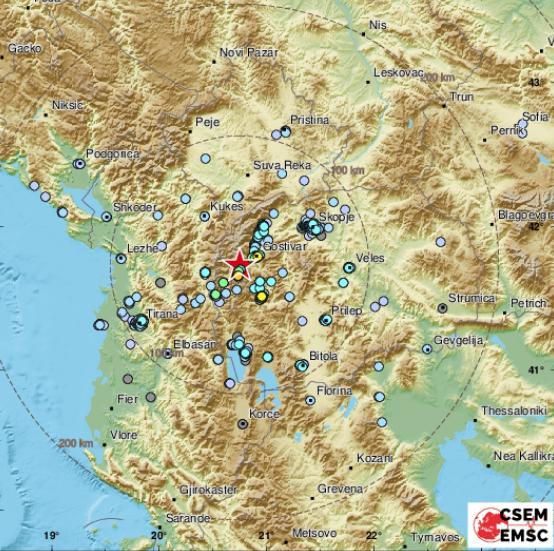 Prema podacima EMSC-a, epicentar zemljotresa je zabeležen na 64 kilometara jugozapadno od Skoplja.