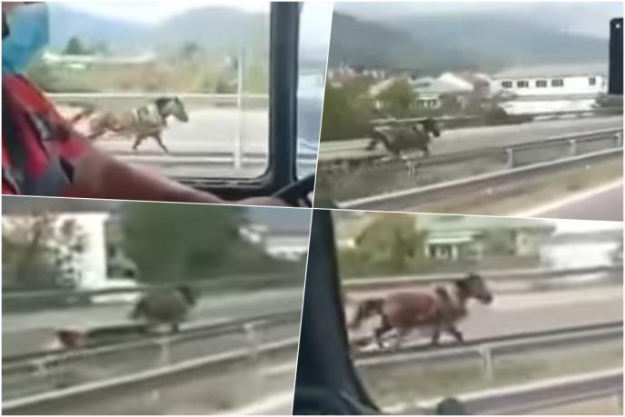Na autoputu u Severnoj Makedoniji snimljen je konj sa zapregom kako trči kolovoznom trakom u suprotnom smeru.