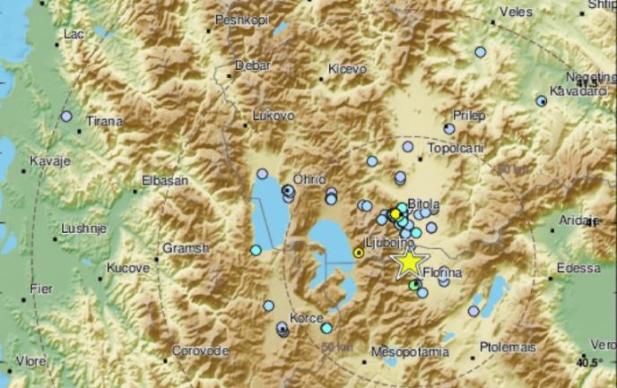 Kako se navodi, u 16.14 registrovan je zemljotres 120 kilometara južno od Skoplja, u susednoj Grčkoj, u pograničnom epicentralnom području Bitolj-Lerin.