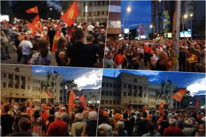 Protest je počeo posle još jednih neuspešnih konsultacija parlamentarnih stranaka u Sobranju, nakon kojih je lider opozicionog VMRO-DPMNE Hristijan Mickoski optužio vladu da Severnu Makedoniju vodi u ambis.