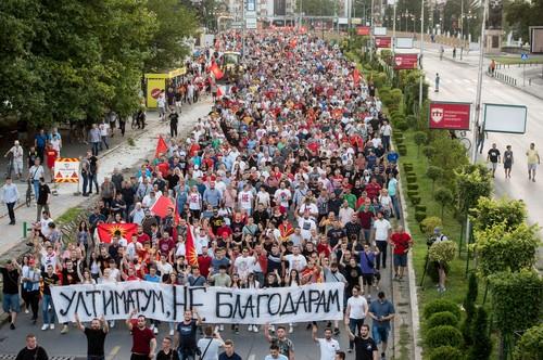 Učesnici protesta, medju kojima su bili i aktivisti najveće makedonske opozicione partije VMRO DPMNE i Levice, tražili su da se odbaci francuski predlog za ukidanje bugarskog veta za početak pregovora Severne Makedonije, za koji smatraju da vodi bugarizaciji njihove zemlje, kao i ostavke vlade Dimitra Kovačevskog i ministra spoljnih poslova Bujara Osmanija.