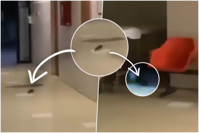 Jedna od pacijenata snimio je velikog pacova kako se opušteno šeta hodnikom bolnice ne obazirući se na prepunu čekaonicu ljudi koji čekaju pregled kod doktora.